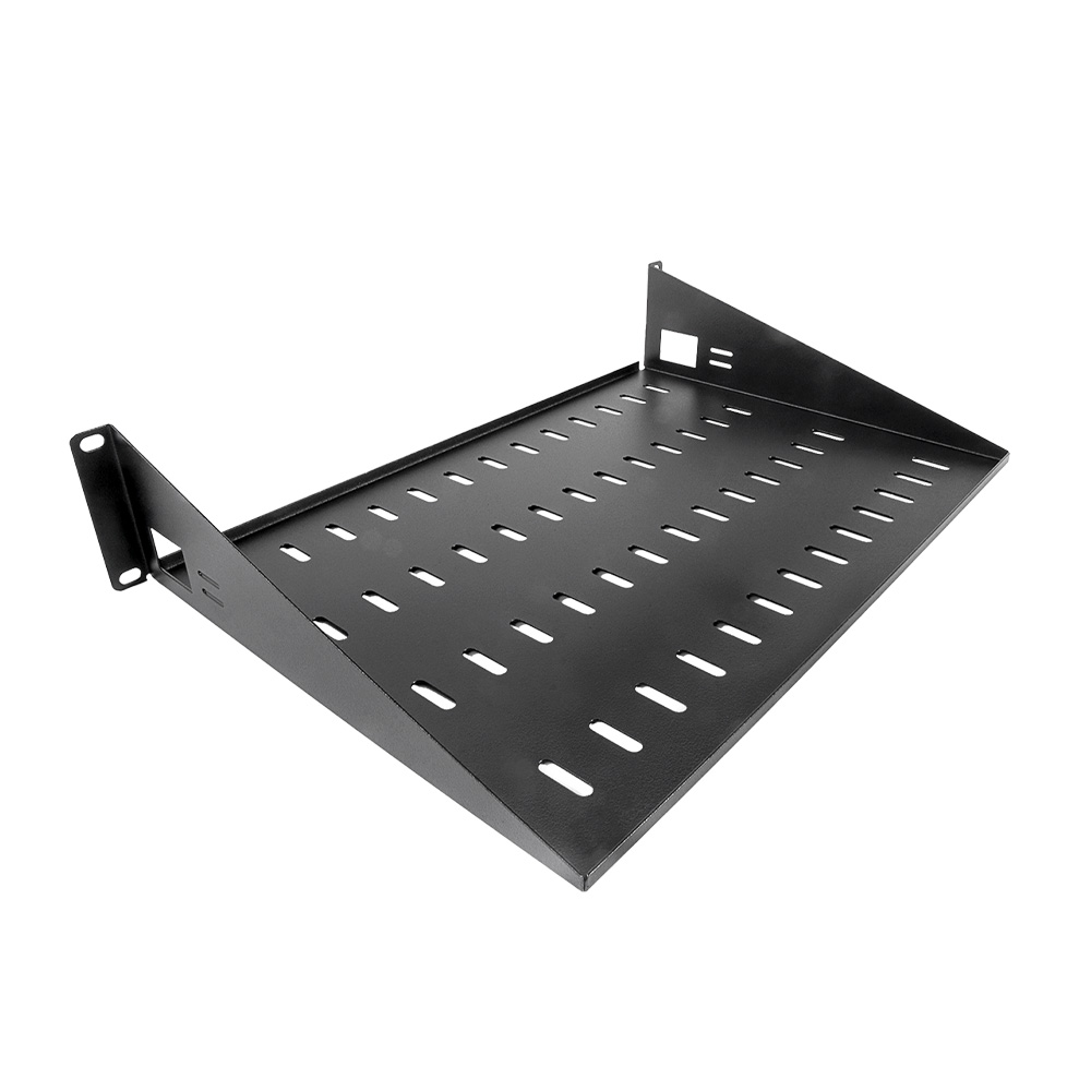 Стационарная консольная полка ЦМО МС-30-9005 для телекоммуникационного шкафа типоразмера 19" изготовлена из стали толщиной 1.2 мм с полимерным порошковым покрытием черного (RAL 9005) цвета. Соответствует ГОСТ 28601.2 (19-дюймовые конструктивы по МЭК 297).