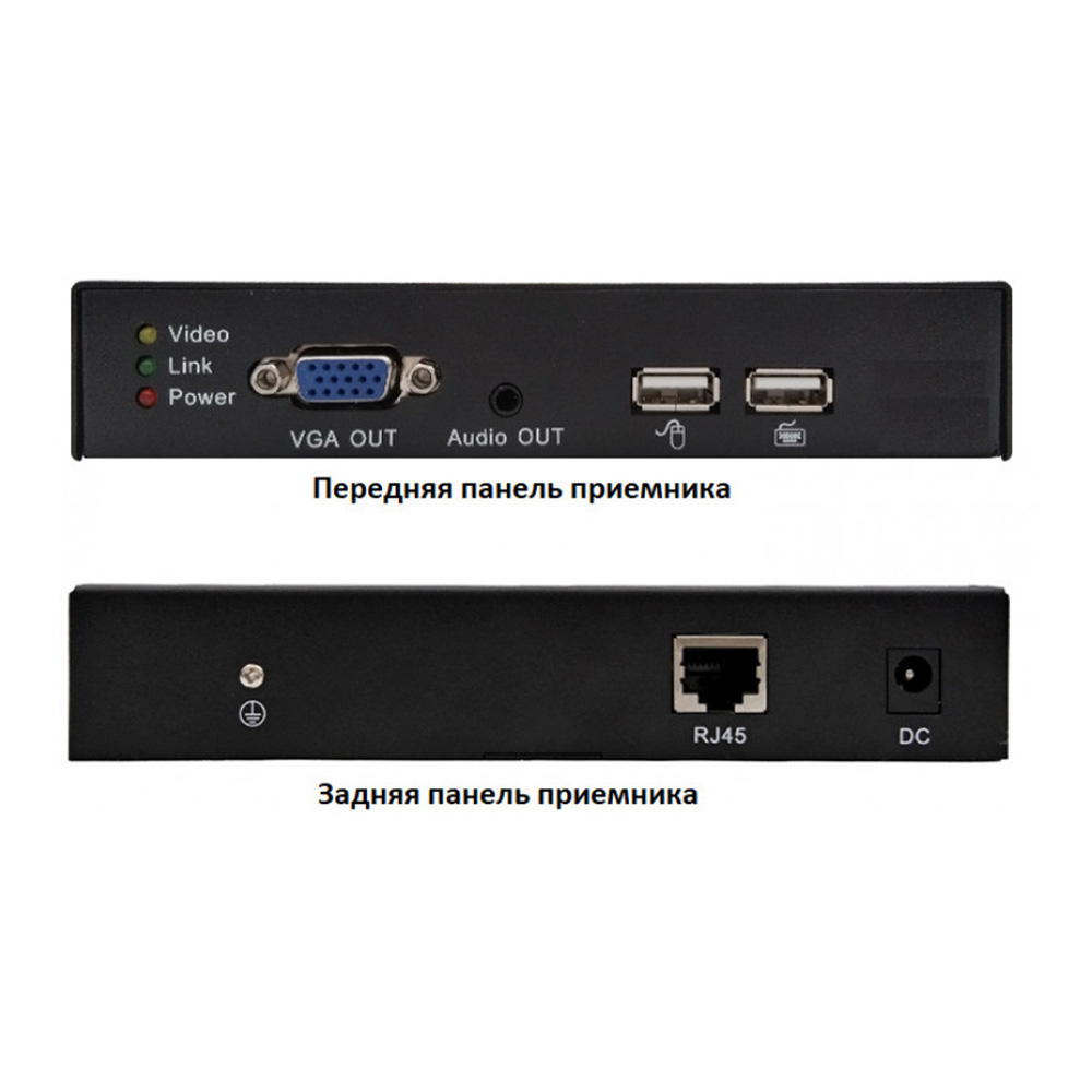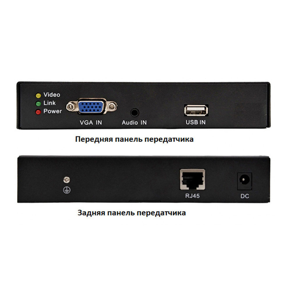 Комплект переходников (VGA, USB — RJ-45) NST NS-HDU-VGA-KVMR для передачи видео, аудио, управления клавиатурой и мышью по витой паре состоит из передатчика, подключаемого к источнику видеосигнала, и приемника, передающего сигнал монитору.