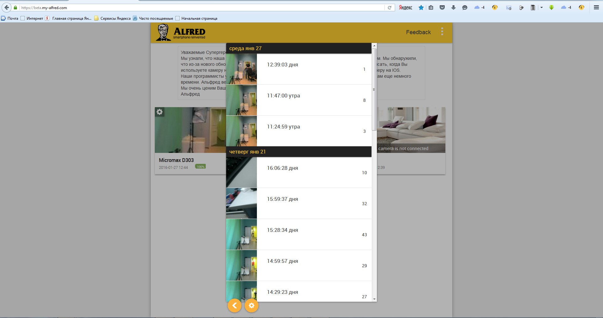 Для Android-устройств видеоархив доступен из приложения и через веб-браузер Firefox.