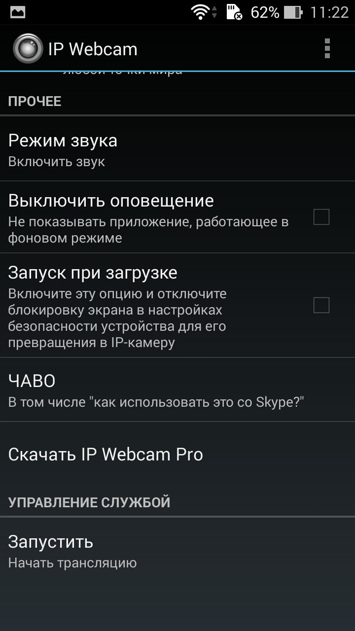 Это самое распространённое приложение для превращения смартфона в камеру видеонаблюдения. Приложение имеет множество настроек. Остановимся на самых необходимых.