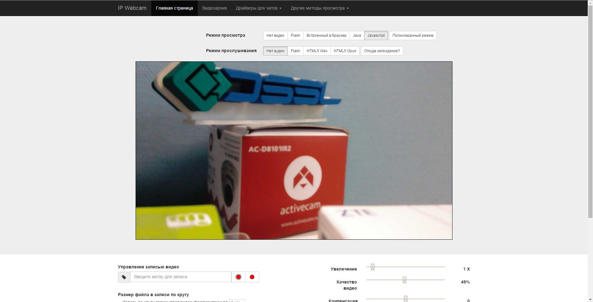 Через веб-браузер доступна полная настройка камеры-смартфона, просмотр архива онлайн-видео, также есть функция двусторонней аудиосвязи.