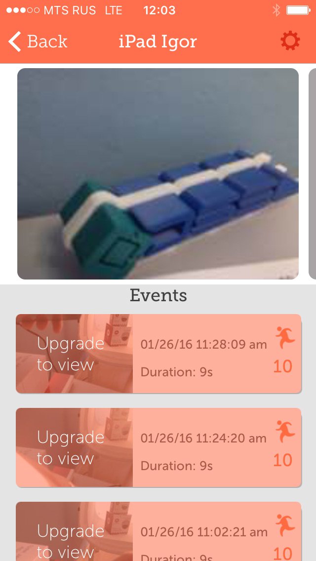 Запись тревожных событий производиться как на само устройство, так и в «облако». Функция платная – 529 рублей в месяц для одной камеры. Оплатить можно через аккаунт AppleID или GooglePlay.