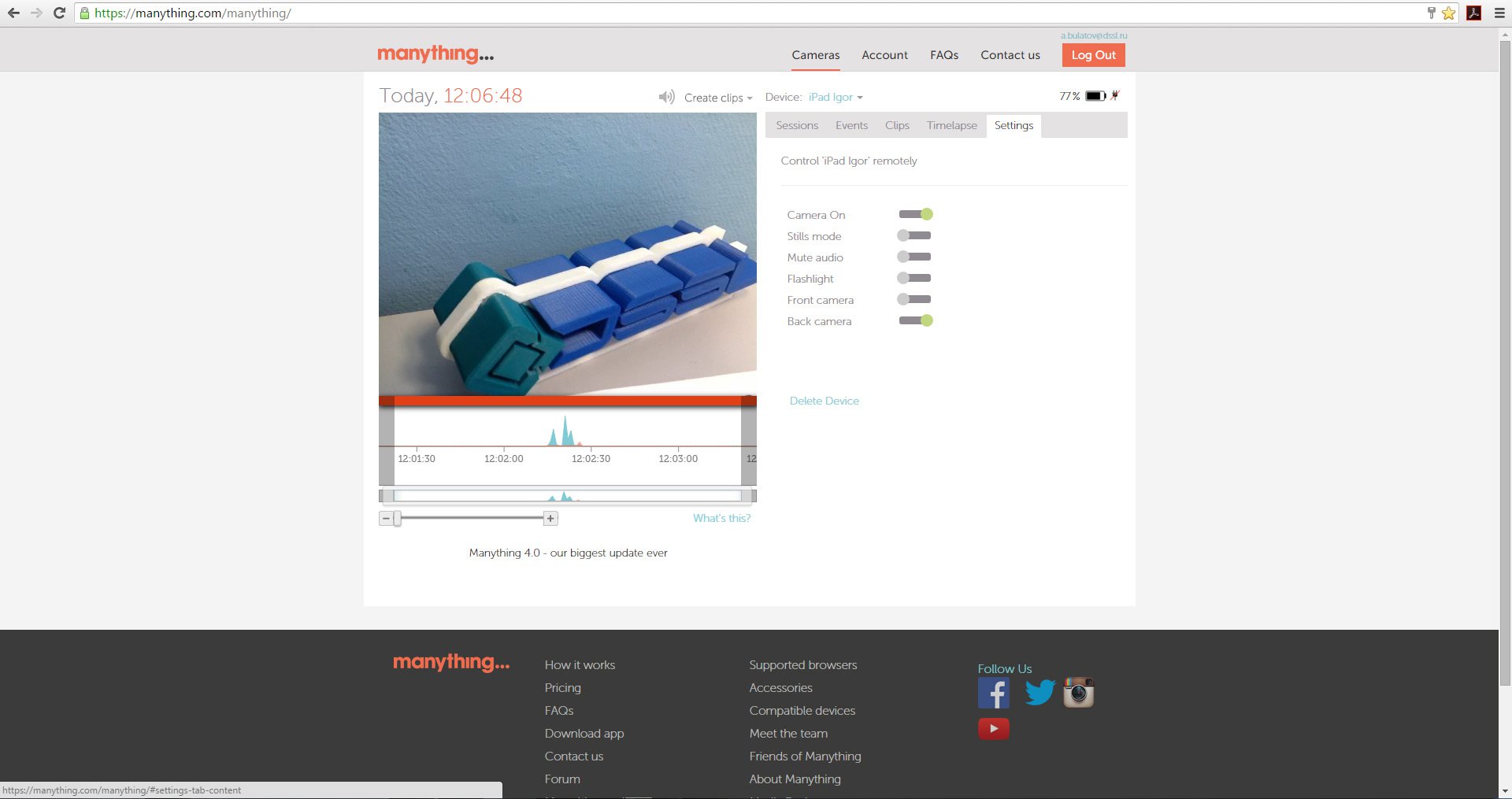 Приложение отсылает Push-уведомления и уведомления по электронной почте в случае обнаружения движения в кадре.