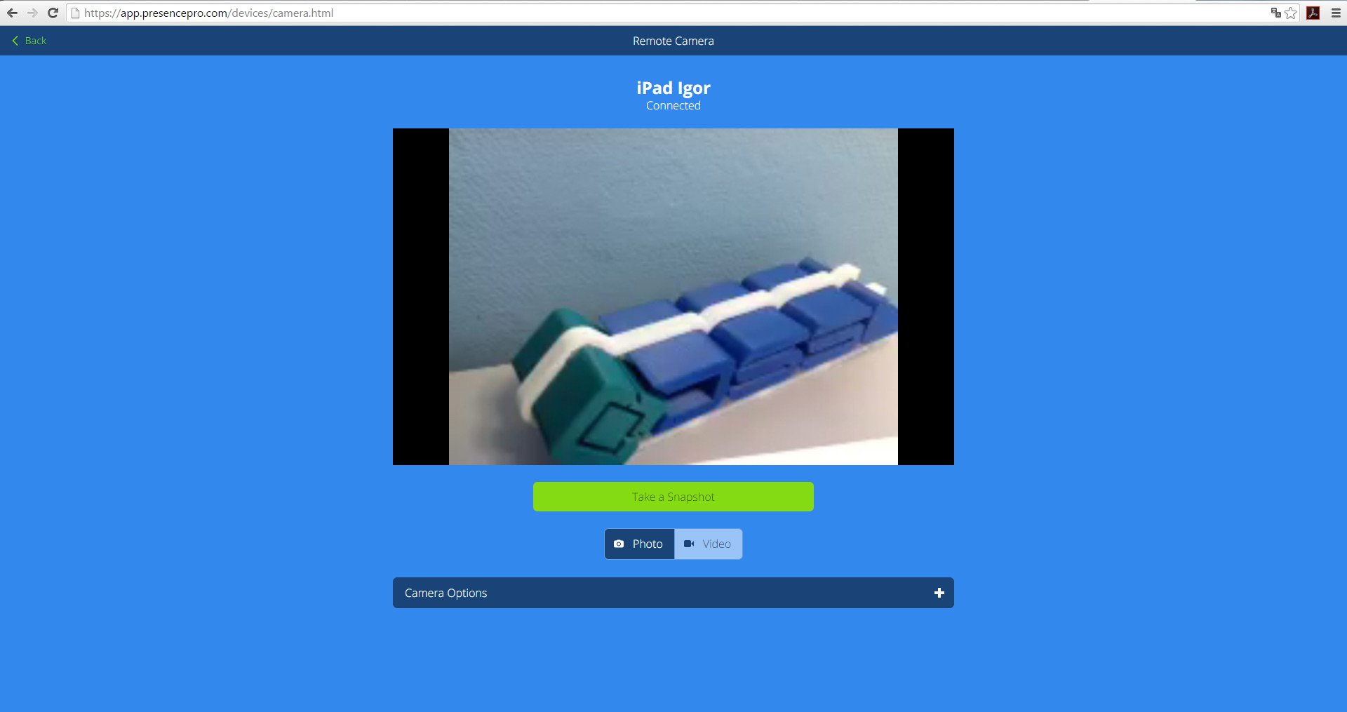 Приложение кардинально отличается от предыдущих. Оно не транслирует видеопоток, а делает фото. В обращение очень простое.