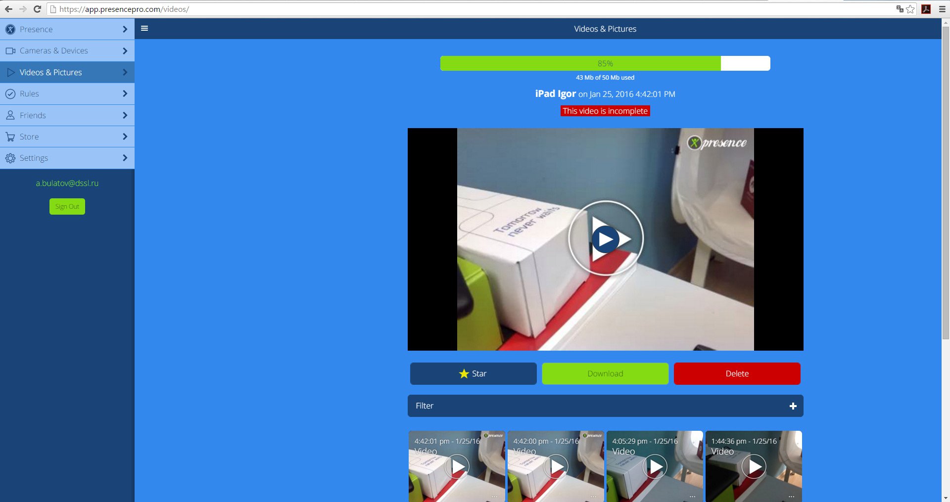 - нет возможности скачать видео из «облака».