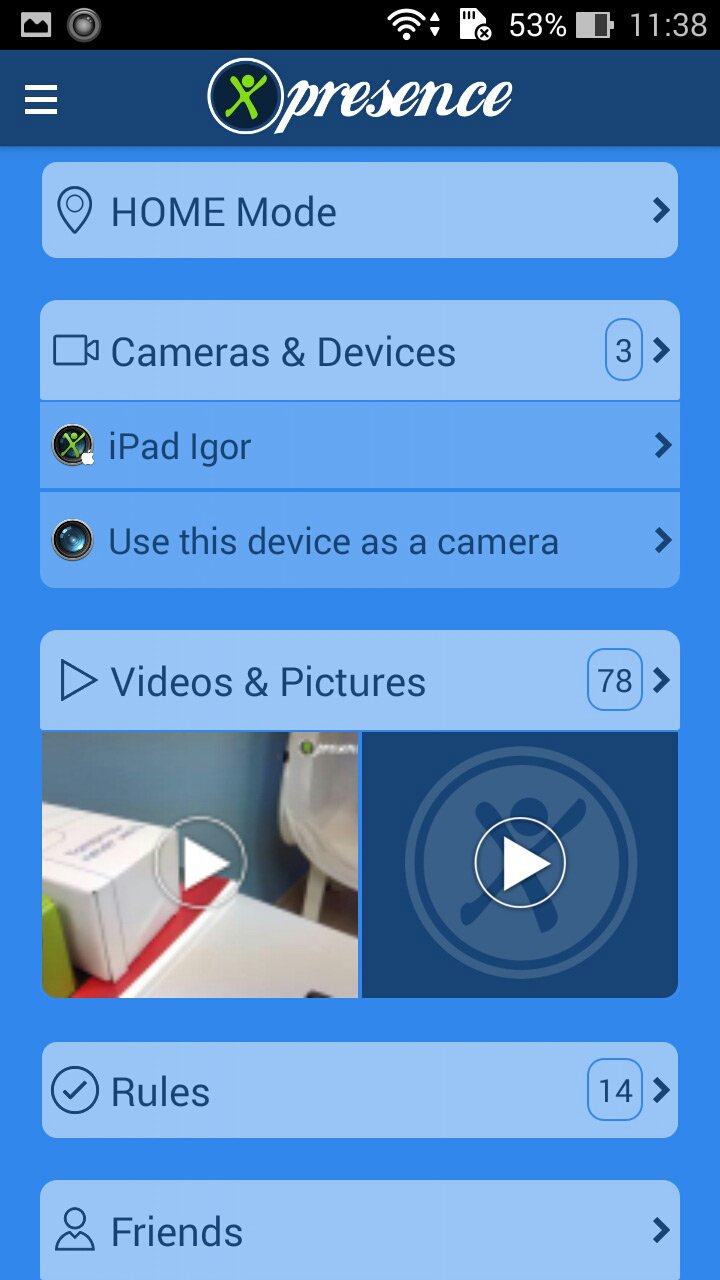 Приложение Presence подключает датчики, которые можно приобрести на сайте сервиса. Но в отличие от ATHome Presence организовывает видеоконтроль через одно приложение.