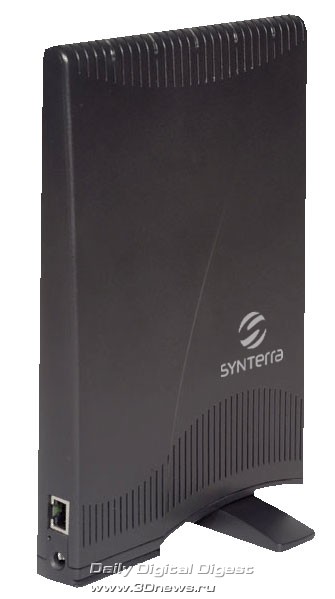 Среди очевидных плюсов сети Synterra можно назвать быстрое – в течение трёх дней, подключение, установку оборудования в офисе всего за 10-20 минут без всяких разрешений на подключение или согласований и скорость доступа в диапазоне от 64 Кбит/с до 1,3 Мбит/c с неограниченным трафиком на всех тарифах. Модем производства NextNet Wireless, обеспечивающий весь офис доступом в интернет, телефонией (до 8 линий и прямых городских номеров) и возможностью интеграции с существующими VPN-сетями, сравним размерами с обычной книгой и размещается на рабочем столе в офисе. Вот как выглядит этот модем "в жизни".