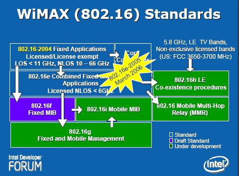Дополнительным стимулом для развития формата нового поколения также стало принятие индустриальным Форумом WiMAX в декабре 2005 года, финальных спецификаций стандарта IEEE 802.16e-2005 WiMAX Mobile System Profile, попросту называемого "мобильный WiMAX" и, попросту говоря, описывающих требования к мобильным устройствам, заточенным под формат. Теперь, когда поддержка интерфейса стала возможной устройствами любого уровня, от корпоративных офисов до ноутбуков и даже сотовых телефонов, дело остаётся за малым. Совсем скоро, один за другим, начнут появляться адаптированные чипсеты, а на их базе – новые интерфейсные устройства и встроенные решения.