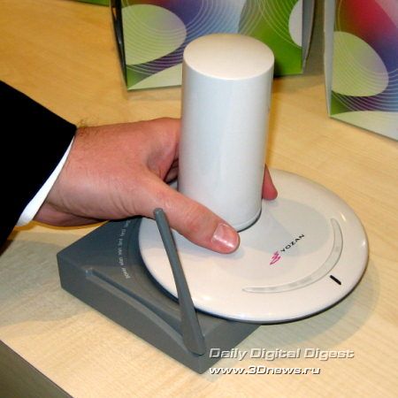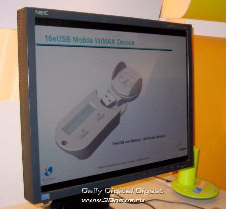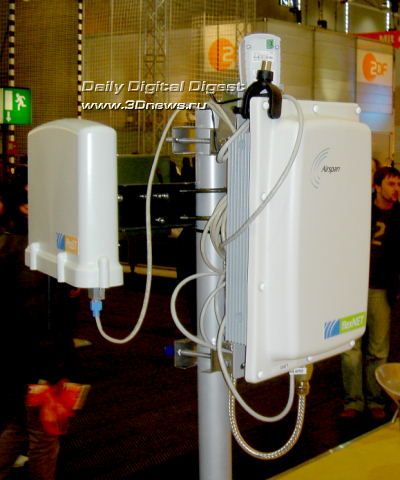 Вот здесь мы переходим к самым интересным фактам, добытым мною на CeBIT 2006. Пожалуй, одним из самых сильных впечатлений всех дней пребывания на выставке стала возможность сфотографировать и "потрогать живьём" не какой-нибудь там прототип, а самый настоящий серийный портативный модем WiMAX, поставки которого уже осуществляются в массовых количествах.
