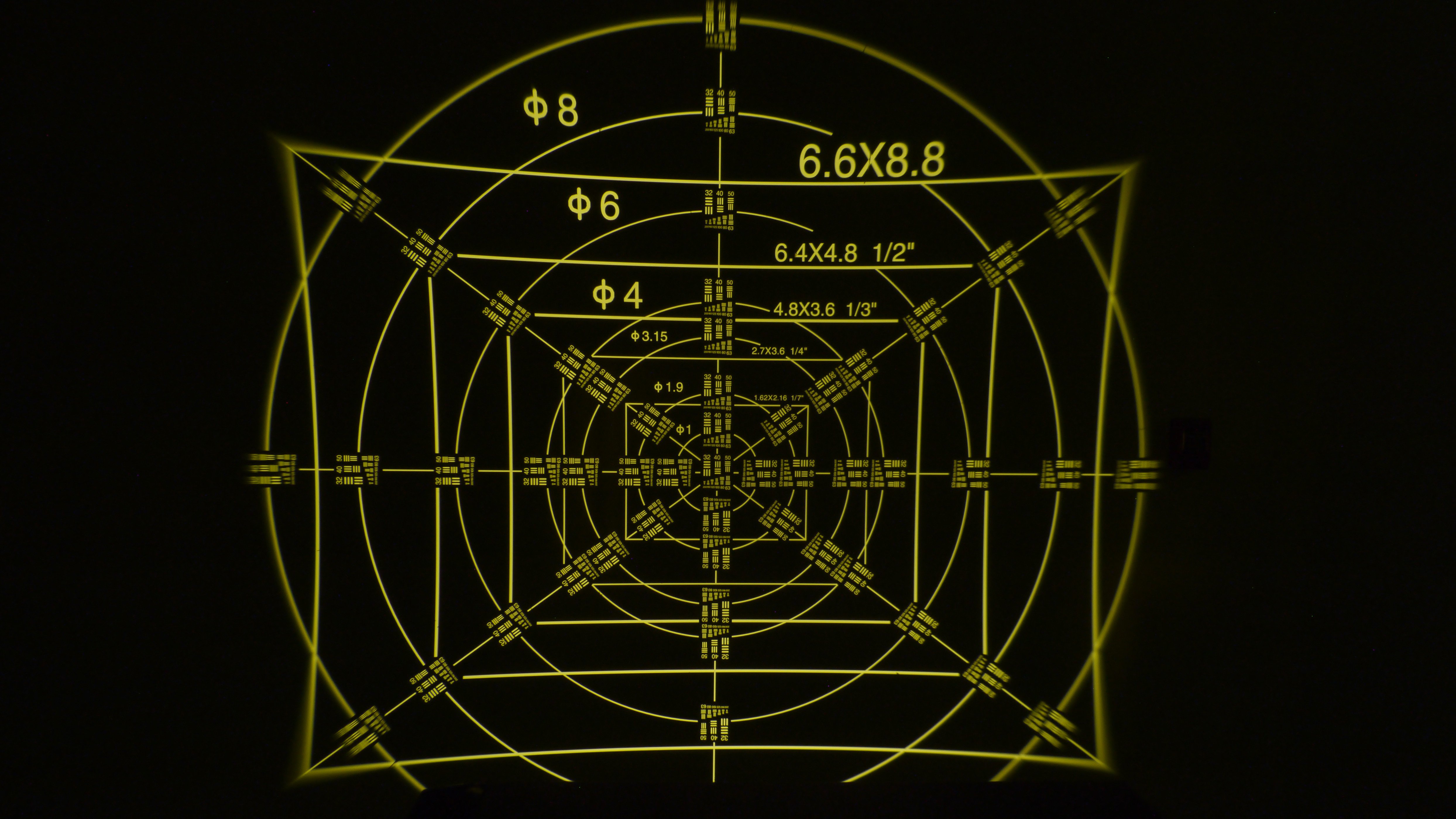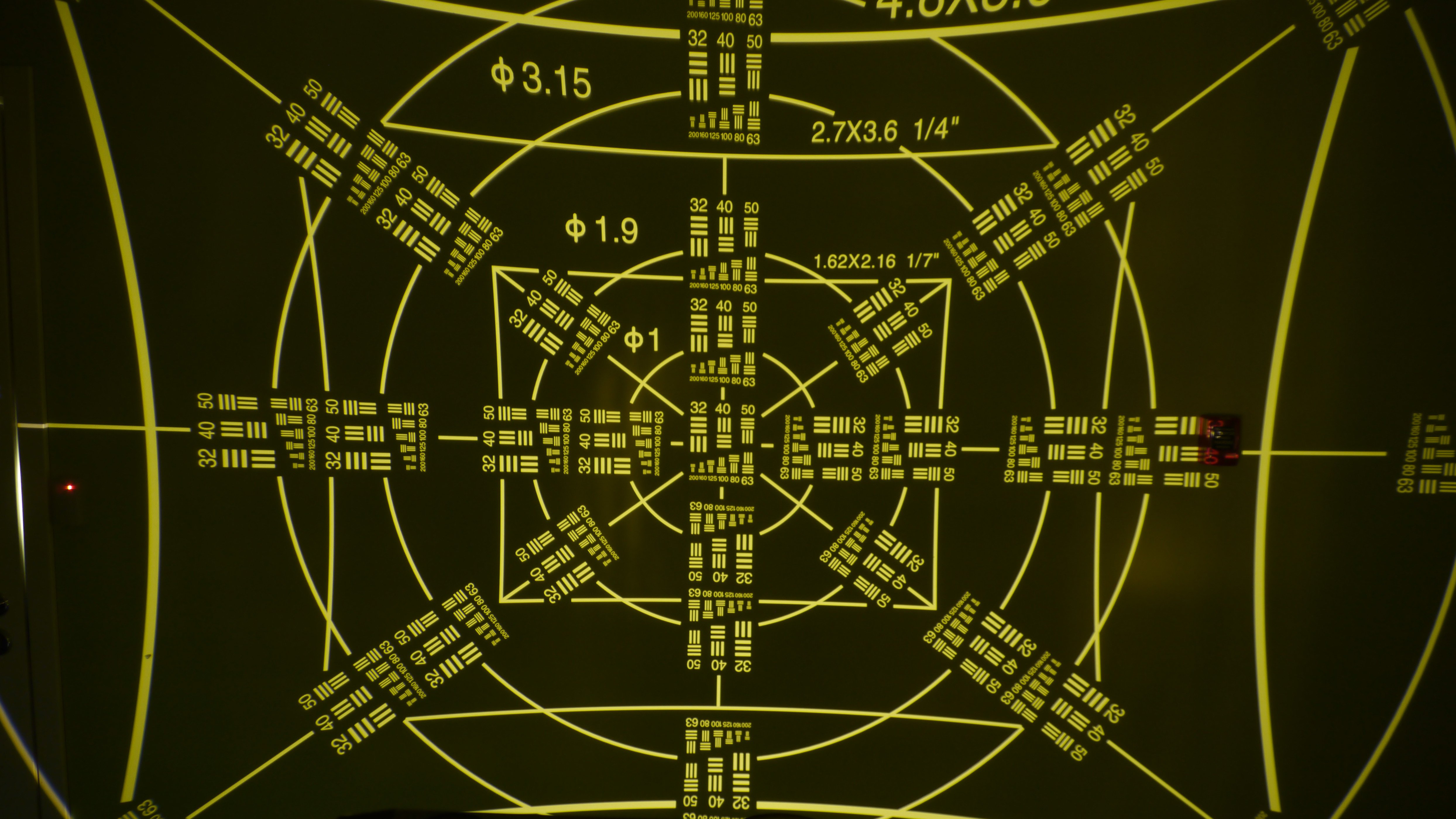 Проектор установлен параллельно экрану, во время тестирования находится на одном расстоянии от экрана, таким образом объективы участвующие в тесте находятся в равных условиях. Результатом мы будем считать измеренное разрешение.