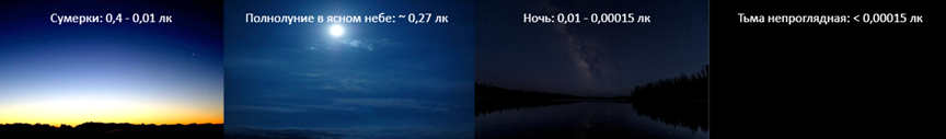 - минимально допустимый уровень освещённости 0,01 люкс;